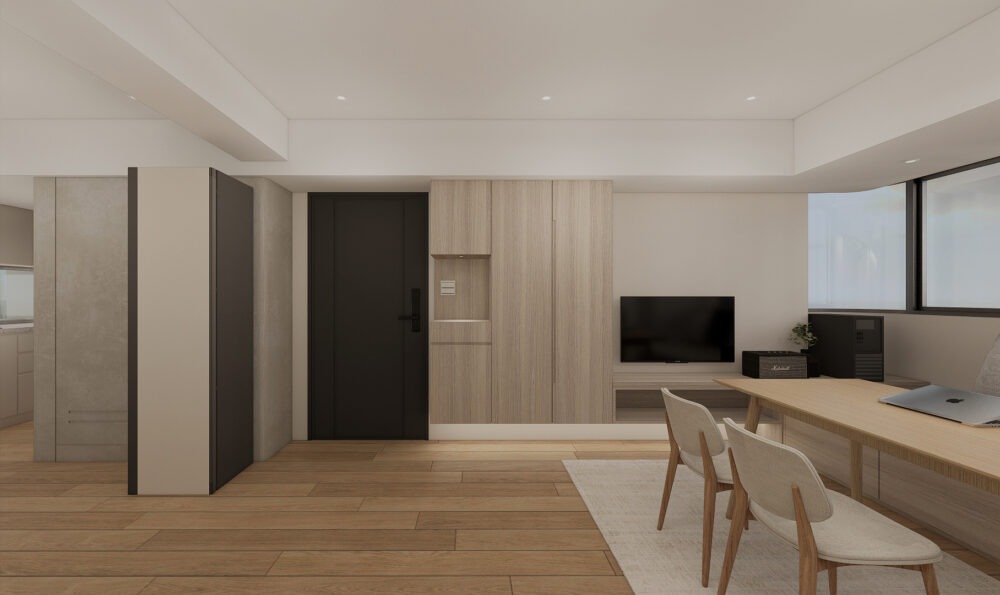 3D, 作品展示台北大安-極簡開放式小宅3D Posted on 2026 年 3 月 3 日2026 年 3 月 3 日 by chig2017 03 3 月 案件名稱:台北大安-極簡開放式宅 案件風格:極簡風格 設計師:Andy & Tina 3D設計圖: 一、客餐廳 二、廚房 三、主臥室 四、更衣室 五、主衛浴 延伸閱讀-更多住家 設計作品 釜山DEMER咖啡廳設計|白色極簡風格與光影運用