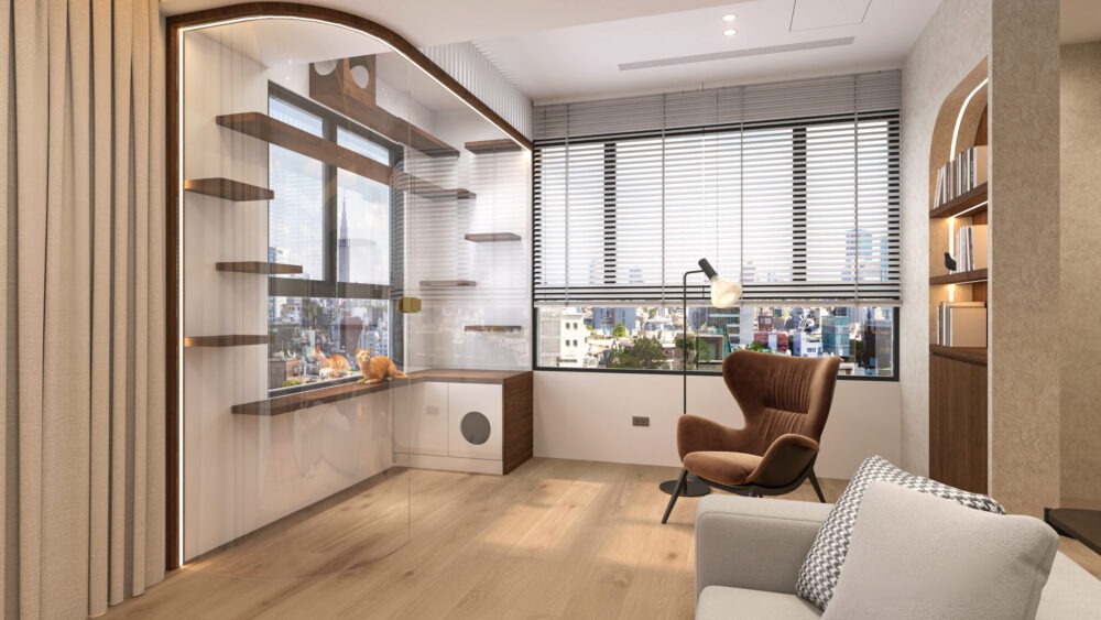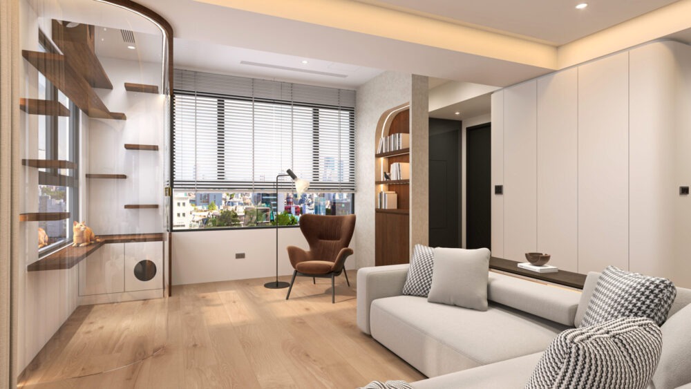 3D, 作品展示泰安街-輕奢韓風寵物宅3D Posted on 2025 年 11 月 13 日2025 年 11 月 21 日 by chig2017 13 11 月 案件名稱:泰安街-輕奢韓風寵物宅 案件風格:輕奢華風格 設計師:Andy & Tina 3D設計圖: 一、玄關 二、客餐廳 三、貓屋 四、廚房 五、主臥房 六、主臥更衣室 七、小孩房 八、客房廁所 九、儲物間 延伸閱讀-更多住家 設計作品 桃園-北歐透明機能小宅3D Six Coffee Wine 以彩繪玻璃與光影打造的層次咖啡酒吧