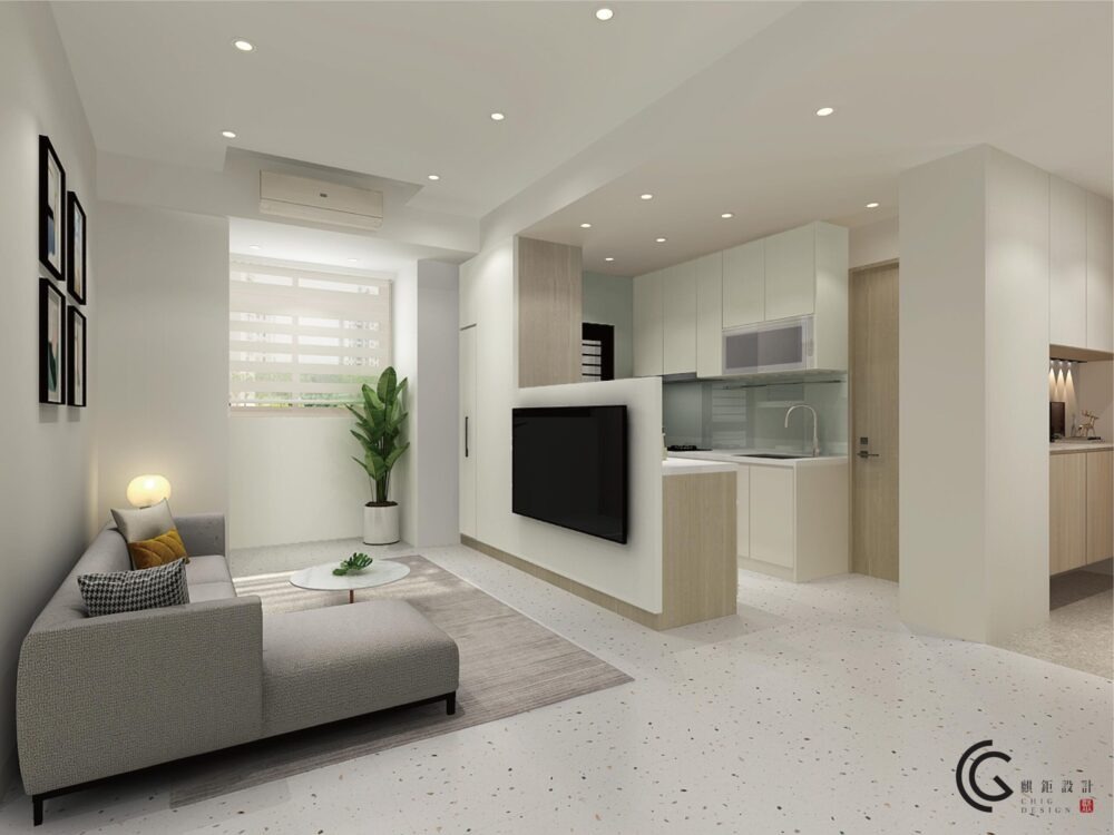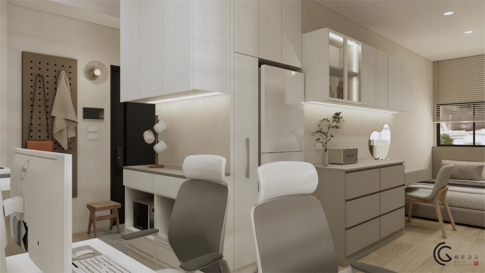 大客廳的生活空間,一覽無遺的大窗美景,大量的櫃體收納空間